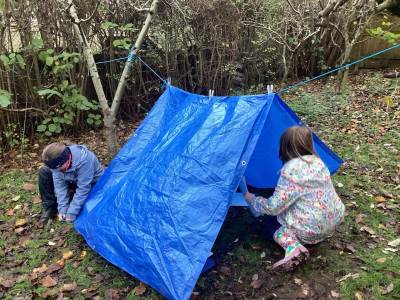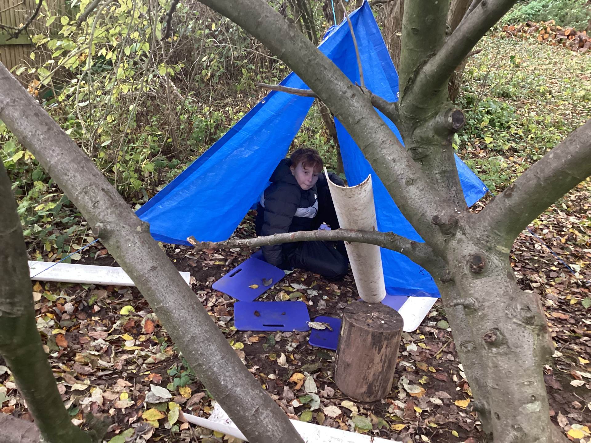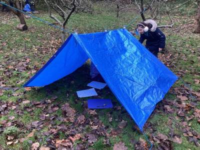 I also put the children into teams and challenged them to use the tarpaulin and rope resources to make some shelters by themselves- everyone had a really good try and it was great to see the knots we have been practising being put to use!