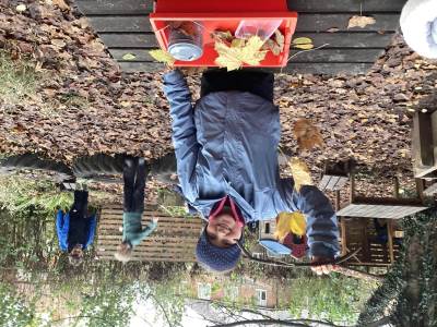We made acorn characters and mini shelters for them in the trees, using old guttering pipes to add bridges and ramps!