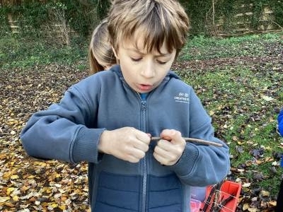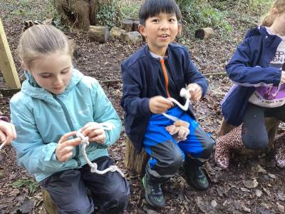 We also learnt a new knot- the clove hitch. We practised the 'fish on the dish' method of making this knot and then some children tied some twigs together using this knot to make bug hotels ready to hang in the woodland to help minibeasts as we enter the colder seasons of the year.