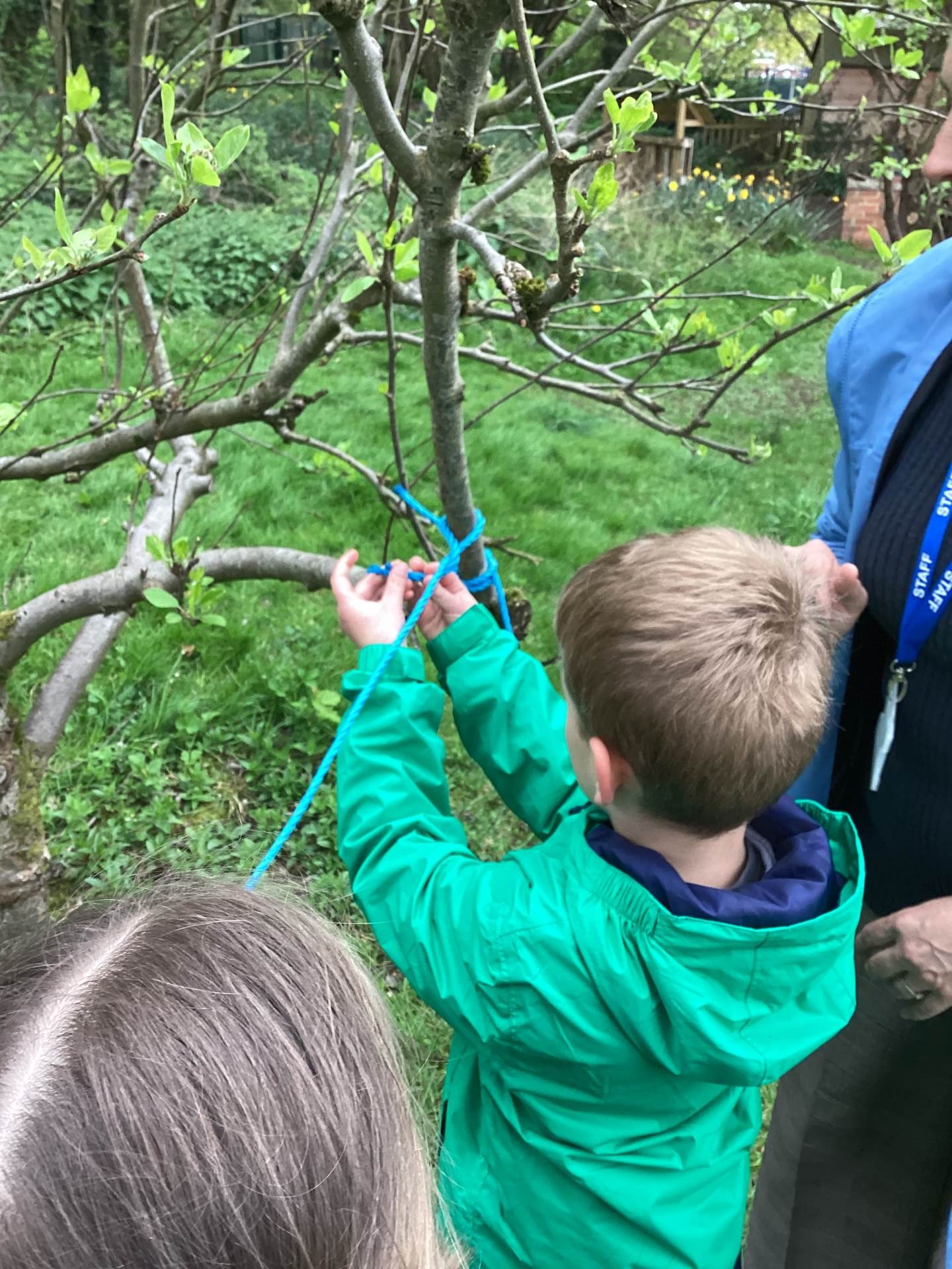 - using overhand knots to create rope obstacle courses in the orchard area and guiding a partner along it