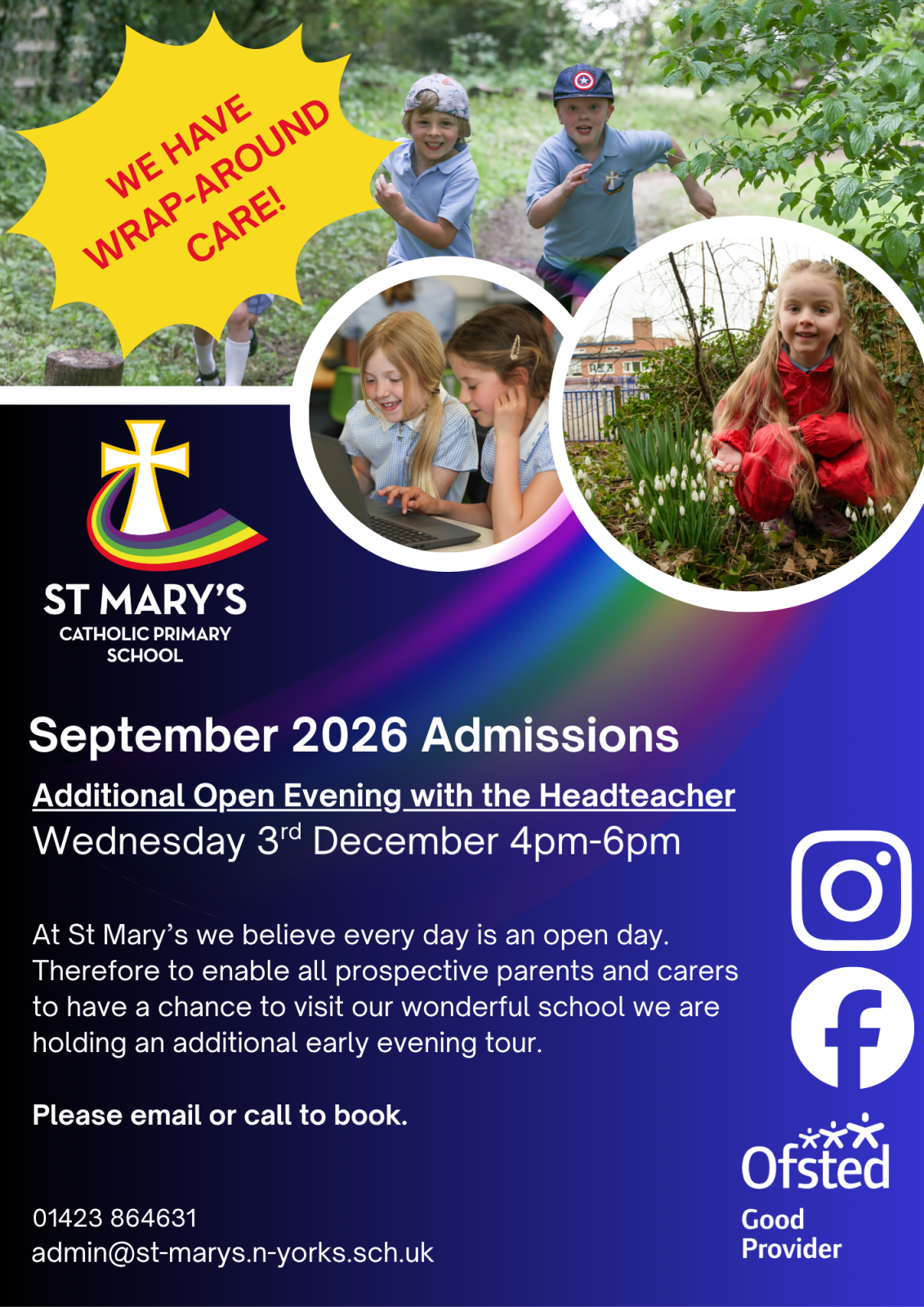 Please contact the school on 01423 864631 or admin@st-marys.n-yorks.sch.uk if you would like to book a tour of the school.